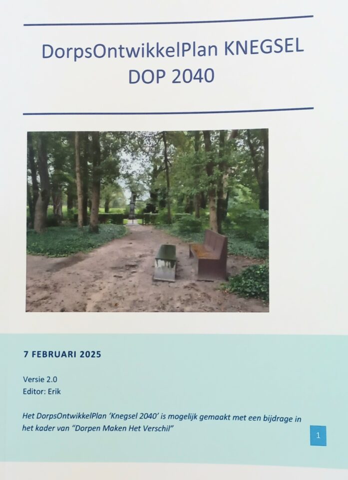 De Dorpsraad heeft hard gewerkt aan het samenstellen van het DorpsOntwikkelPlan en dit vervolgens in het voorjaar aan de Knegselnaren gepresenteerd. Het plan is ook in druk verschenen en dit hebben wij financieel mogelijk gemaakt.
